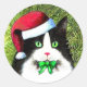 Adesivo Redondo Tuxedo Cat de Natal com Arco
