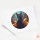 Adesivo Redondo Tuxedo Gato De Halloween Com Pumpkins Assustado