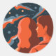 Adesivo Redondo Two Figures Contemplating an Abstract Cosmic Scene