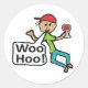 Woohoo! design apresenta uma cara feliz pulando no ar e gritando "Woohoo!".