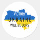 Ucrânia "A vitória será nossa" (sobreposição sobre as cores do país na Ucrânia) adesivo redondo de designs Ken-Ray. Com a Ucrânia à beira da vitória, por que não mostrar o vosso apoio com estes autocolantes de mensagem positivos?