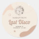 Adesivo Redondo Clássico Última Festa de Solteira Retro Disco que você pode personalizar facilmente para o seu fim de semana divertido com as amigas antes dos votos. Delicie suas amigas com este simples adesivo retrô. Perfeito para outros eventos especiais, incluindo aniversários e save the dates.