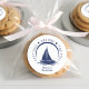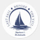 Adesivos náuticos azuis e brancos para chá de noiva / festa de solteira com veleiro e frase "última vela antes da cortina". Personalize com os detalhes do seu evento.