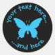 Borboleta azul de ulisses. Ícone vetor com cor personalizável. Cor de fundo personalizada. Dois campos de texto personalizados em círculo.