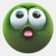 Um adorável personagem de bola verde-felpudo com uma expressão surpreendida