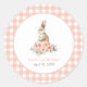 Adicione um toque final à decoração da sua festa de aniversário com estes adesivos, com flores cor d'água cor rosa e coelho em fundo de xadrez de gingham rosa.