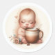 Feche seus convites para o chá de bebê com uma xícara quente de beleza! Este adesivo de envelope "A Baby is Brewing" apresenta um bebê adorável abraçando uma caneca de café, perfeita para dar o tom para sua celebração acolhedora e inspirada na cafeína. Com tons macios e vibrações encantadoras em café, é um detalhe doce que vai despertar qualquer envelope, bolsa de favor ou caixa de presentes. Personalizável e ideal para chás de fraldas com tema de café ou chá.