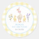 Adesivo redondo clássico com primeiro aniversario Gingham amarelo-ganso de um Bobo