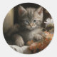 Adesivo Redondo Um Canto Cozy Tabby Kitten