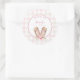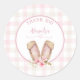 Um Bunny está fazendo obrigado de uma garota de aniversário... você festejar autocolantes redondos de 3 polegadas. Uma bela tipografia em rosa pastel. Orelhas de coelhinho aquoso adoráveis com flores silvestres cor-de-rosa em fundo de gingham rosa pastel. Fácil personalizar o nome da sua garota especial de aniversário.
