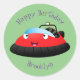 Adesivo Redondo Um desenho animado de hovercraft, vermelho e bonit