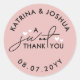Vestir bengalas em cor-de-rosa empoeirado com design de tipografia preta e corações brancos. Bonitos adesivos para bonecas para doces e doces com um doce Obrigado numa bela design de tipografia. Casamentos cor-de-rosa poeirento favorecem adesivos com texto preto e corações brancos pequenos. Os adesivos favoritos são tratados em branco, preto e rosa. Os adesivos de casamento personalizados com seus nomes e data de casamento em texto curvado.