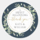 Apresentando delicadas folhas de cor aquática em fundo azul-marinho, este obrigado botânico que você cola pode ser personalizado com sua mensagem e nomes especiais do dia do casamento. Projetado por Thisnotme©