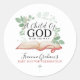 Celebrar a bênção da nova vida com este adesivo de chá de fraldas maravilhosamente desenhado. Apresentando verdes leves, tons vermelhos suaves e uma Bíblia aberta, esta design cheia de fé complementa perfeitamente um chá de fraldas temático cristão. Personalize-o com o nome da futura mãe ou dos futuros pais para um toque sincero. Ideal para favores, envelopes ou decoração, este adesivo é um doce lembrete de amor, fé e novos começos.