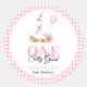 Adesivo Redondo Um ganso de bobo, primeiro aniversario de gingham