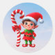 Adesivo Redondo Um lindo Elfo de Natal segurando uma cana doce