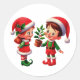 Adesivo Redondo Um menino feliz e uma garota de Natal Elf