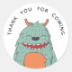Adesivo Redondo Um monstro engraçado. Aniversário obrigado você po