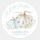 Um adesivo redondo de chá de bebê elegante, projetado com abóboras em aquarela azul e branca. A maioria das letras é editável - clique no botão "Personalizar Mais" para editar. Itens correspondentes em nosso design de festa Cava na loja