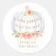 Este encantador adesivo de chá de fraldas é decorado com uma floral de aquarela em tons de coral, rosa, ouro e verde, e as palavras "Um pequeno abóbora está a caminho!" Facilmente personalizável com seu nome. Original Watercolor © Michele Davies.