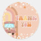 Adesivo redondo clássico de um primeiro aniversario de Groovy