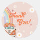 Adesivo redondo clássico de um primeiro aniversario de Groovy