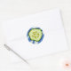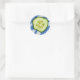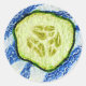 Um lápis e desenho de caneta de uma fatia de um pepino em uma toalha de mesa.