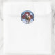 Um bonito autocolante com a ilustração de uma vaca festiva num chapéu de Papai Noel em frente a um lindo celeiro vermelho decorado em luzes de Natal e uma coroa festiva num dia de inverno de neve. São tão bonitos para selar seus cartões de Natal ou bolsas partidárias.