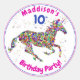 Unicorn Birthday Sticker para convites de festas de aniversários e bolsas de galhardetes da criança. Programas de exemplo para o décimo aniversário de uma criança, mas podem ser alterados para qualquer número. Para personalizar com o nome e a idade do seu filho, basta inserir o texto no nosso modelo fácil, substituindo a amostra.