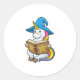 Adesivo Redondo Unicorn como assistente com livro e chapéu