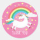 Adesivo Redondo Unicorn Obrigado Favor Sticker