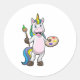 Adesivo Redondo Unicórnio em Pintura com Pincel e Cor
