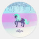 Adesivo Redondo Unicórnio Roxo e Teal com Brilhante Espelho