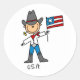 Um vaqueiro bonitinho vestido com o patriótico vermelho, branco e azul dos EUA segura e levanta a bandeira dos EUA em botões, cartões, canecas, Camisetas, mousépads e muito mais!