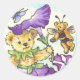 Um pequeno ursinho para um passeio de jardim cumprimenta um urso de abelhas.