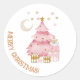 Adesivo Redondo Urso de algodão doce de inverno, cor-de-rosa