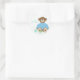 Adesivo Redondo Urso de pelúcia vestido com o Chá de fraldas azul