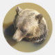 Um urso pardo tomando banho num lago lamacento de água num dia quente. Incrível animal selvagem em seu próprio ambiente capturado nesta foto neste adesivo.