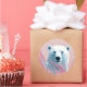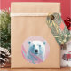 Adesivo Redondo Urso polar branco, rosa, fundo azul.