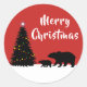 Esta bela e simples design apresenta dois ursos bonitos admirando uma árvore de Natal decorada, com um Natal feliz moderno em roteiro. Uma etiqueta de feriado elegante perfeita para envelopes ou presentes!