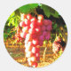 Um monte de uva do Globe Vermelho da Califórnia pendurada na videira, cacos no sol do pôr.