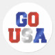 Um adesivo Americano muito patriótico com as palavras "GO USA" em branco vermelho e azul. É o adesivo perfeito para qualquer feriado patriótico! Pegue alguns hoje, deste designer americano Zazzle, Prêmio vencedor.