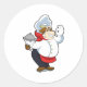 Adesivo Redondo Vaca como Garçom com placa de serviço