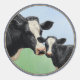 Uma vaca negra da raça Holstein amavelmente nuz seu filhote precioso. Trabalho de arte realista criada de uma pintura original de óleo pelo artista equino e da fauna selvagem Crista S. Forest.