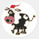 Adesivo Redondo Vaca Negra e Branca em Santa Hat