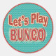 Cartazes de Bunco divertidos para fazer convites, guardanapos ou para os jogadores Bunco vestirem. Design de retrato do estilo Vintage com as palavras "Vamos Play Bunco".