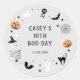 Um adesivo de Festa de aniversário de Halloween com ilustrações assustadoras.
