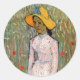 Adesivo Redondo Van Gogh, Menina de Pé; Fundo de Trigo