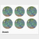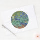 Este belo produto é inspirado pelos irlandeses pintados por Vincent van Gogh em 1889. A imagem apresenta riscas azuis com caules verdes e folhas com pontas pontiagudas plantadas em terra vermelha-marrom.