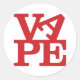 A palavra VAPE em letras vermelhas. As letras VA estão na parte superior (o A está inclinado para os lados) e o PE está na parte inferior. Uma homenagem à pop art, dedicada a todos os vapores.